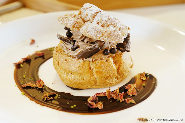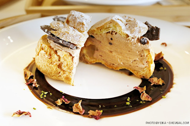 愛吃巧克力的朋友們,則可選擇試試黑色騎士泡芙~沒想到簡單的泡芙,也能擁有如此藝術美感的盤飾,看了真的讓人捨不得吃啊!