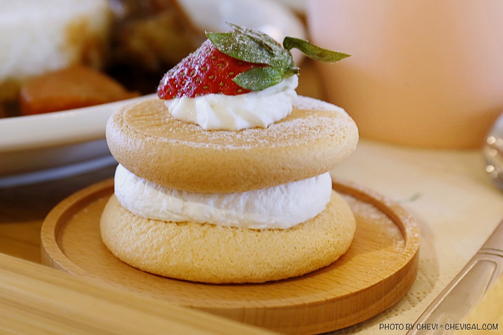 提到卷卷,那就非得提到他們家最經典的生乳銅鑼燒!還記得初次吃到卷卷家的甜點,讓人念念不忘的非這莫屬~雖然是附餐甜點,但還會在表面加上半顆草莓,鬆軟Q彈的餅皮包夾著香濃的生乳內餡,冰久一點還會有類似冰淇淋的口感!