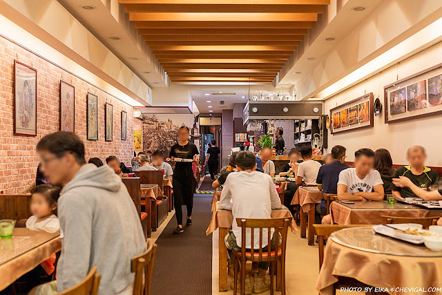 店內的陳設很復古,以紅磚的色塊呈現出傳統的中式風情,抬頭還能看見巴洛克式的玻璃燈罩,木製的類包廂式座位也很有氣氛。雖然沒有特別華麗浮誇的裝潢,但是念舊的朋友一定會喜歡!