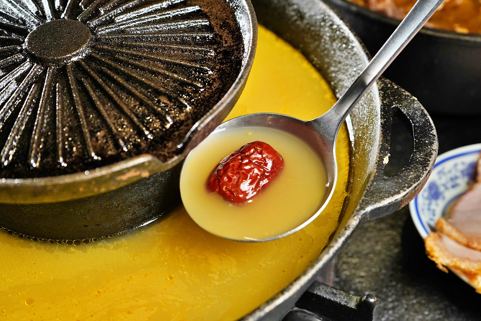 魚編特別加價點了不少女生最愛的「黃金膠原雞湯鍋」,是以金華火腿、老母雞、老薑等食材熬製而成,不但有著豐富的膠質,喝起來濃醇溫順,就連飽滿大顆的紅棗都甜到不行呢~