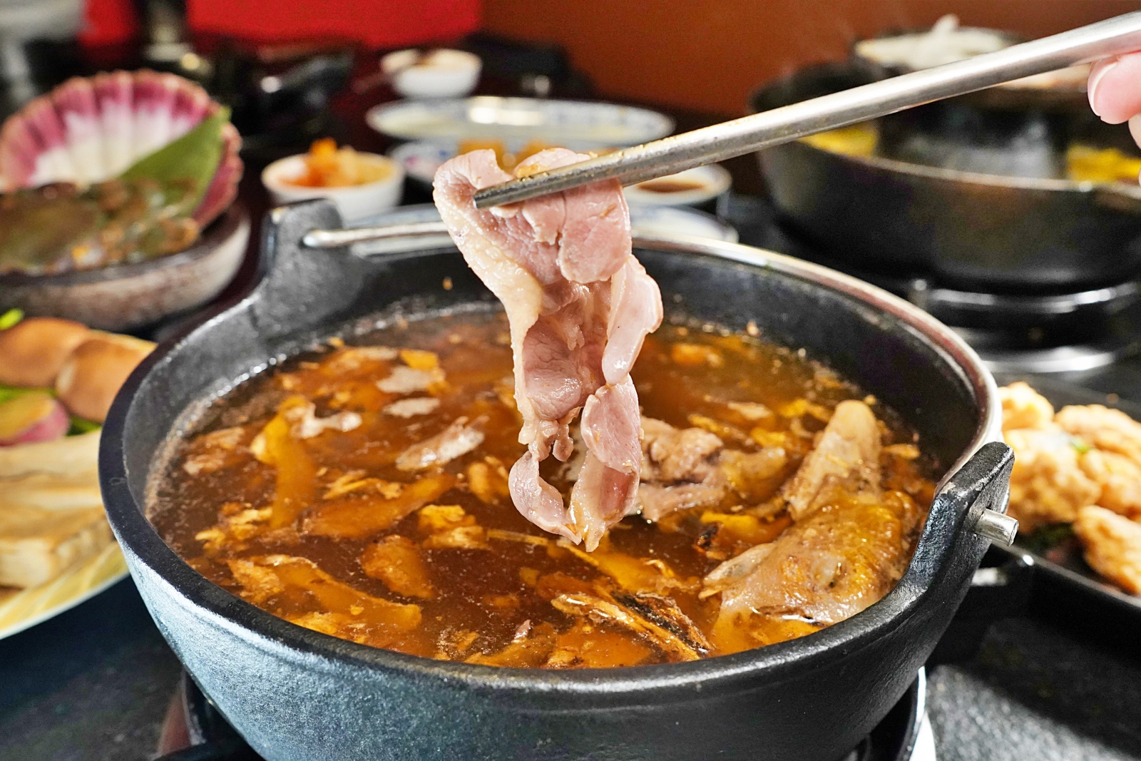 冬天的暖胃神器首推這鍋「薑母鴨香鍋」,除了本身的湯底之外,隨鍋還送一盤櫻桃鴨肉很超值!還能加點小紅蟳,整鍋鮮味更升級~