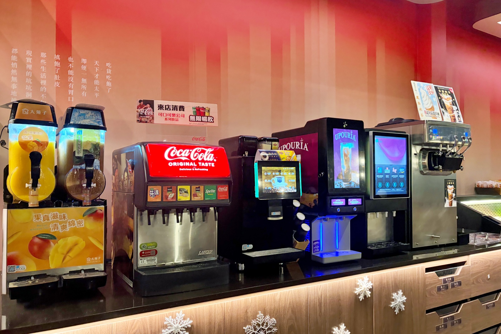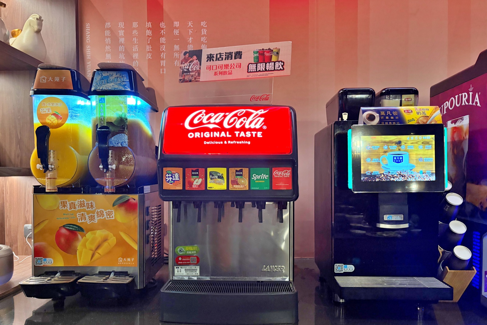 飲料自助吧有冰沙、汽水、果汁、茶飲與咖啡等種類,冷熱都有得挑~