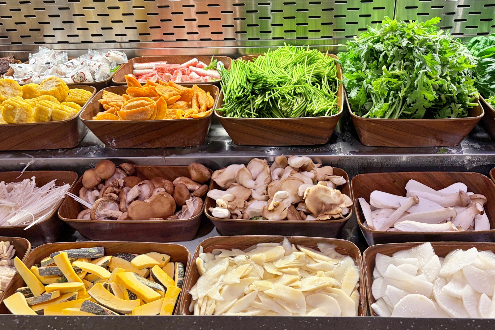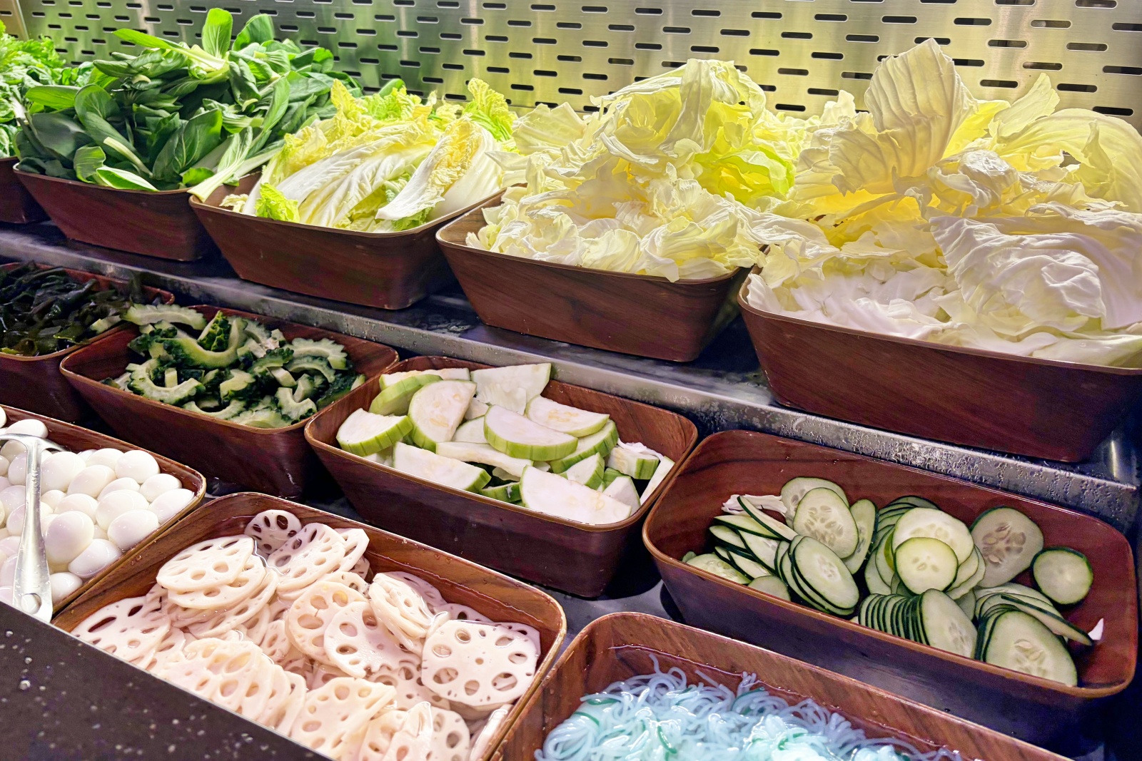 尚石苑石頭火鍋的野菜自助吧超級澎派,提供數十種豐富食材,食材種類都會依季節不定時更換,重點是新鮮度真的很棒~