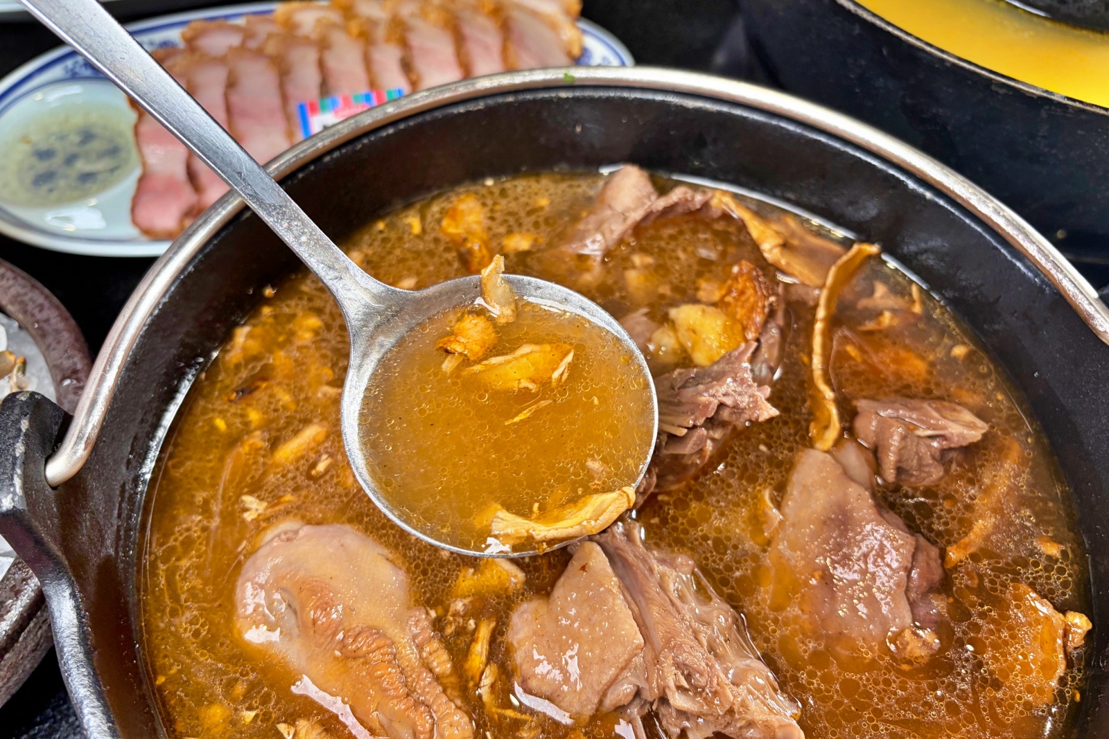 一撈起來就能看到超過半鍋都是帶皮的紅番鴨肉,肉量超級足,而且吃起來香嫩帶Q,特別有肉感,相當過癮!