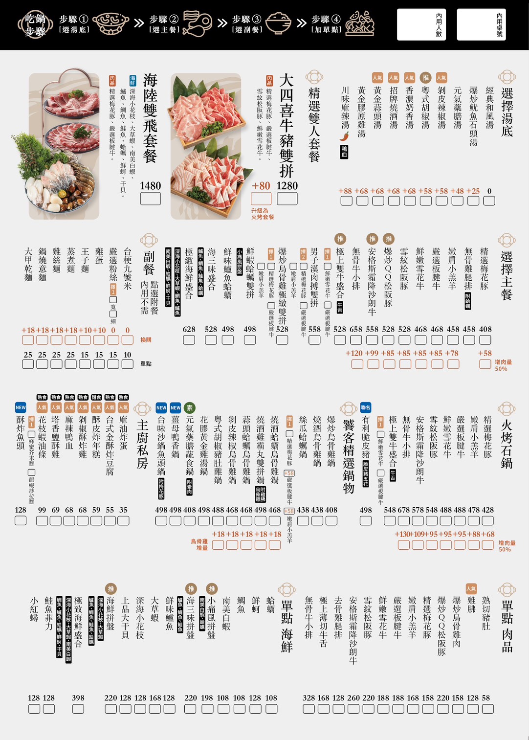 這裡提供尚石苑石頭火鍋的菜單給你們參考,用餐時間為100分鐘、酌收一成服務費,並提供外帶、聚餐與包場服務。