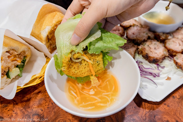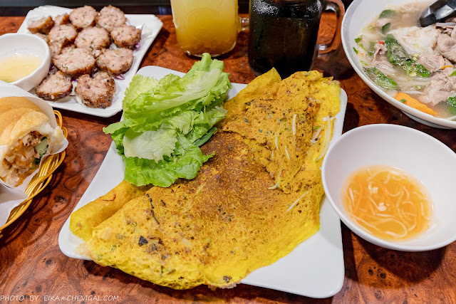 黃金煎餅$80元,或許前面的河粉與法國麵包都是在台灣比較常見的餐點,如果你們想試試不同的越南料理,會很推薦你們可以試試在越南當地非常流行的黃金煎餅~一開始還不知道如何享用的我們,還有請店家教我們應該怎麼吃,像我們包成下面的樣子沾醬享用就對啦!