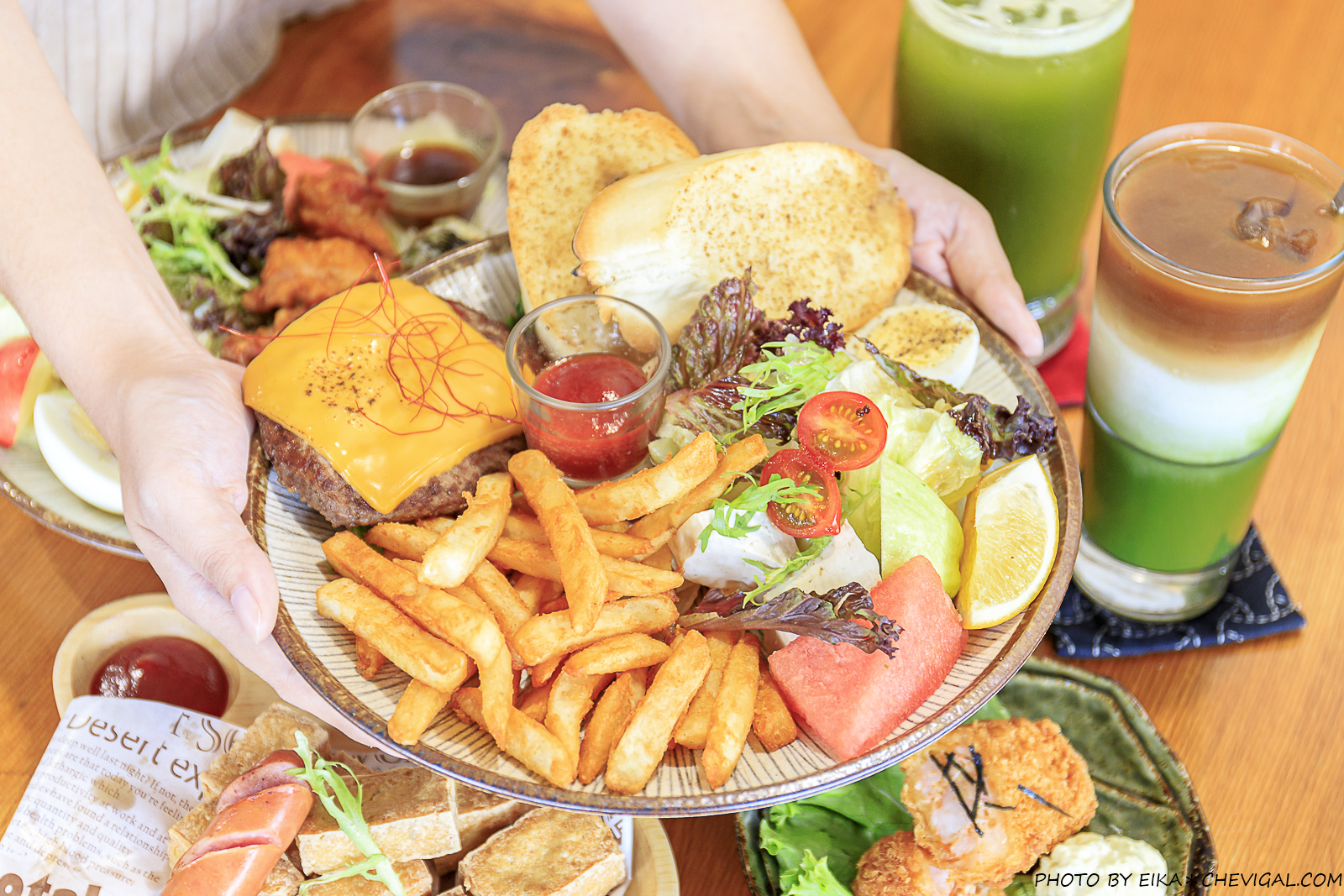 另一份我們點的是麵包盛盤系列當中的漢堡肉盛盤,整盤包含了漢堡肉、麵包、沙拉與薯條,份量還蠻澎派的!適合平常喜歡美式餐點卻又害怕油膩感的朋友~