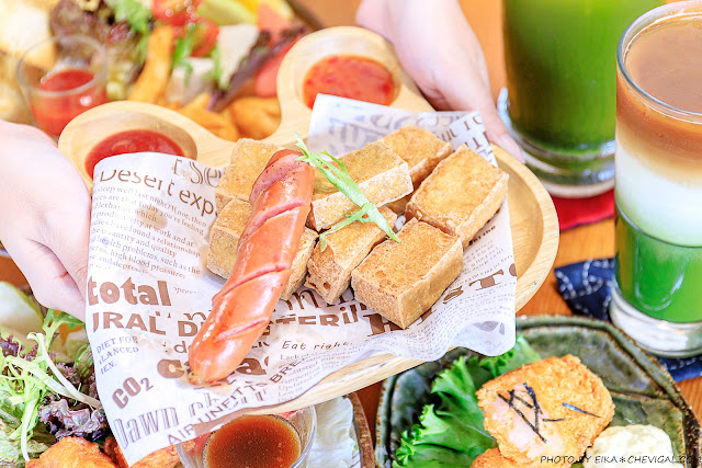 我們點了一份唐揚豆腐與德式香腸,以板豆腐製作的唐揚豆腐吃起來特別香脆紮實;德式香腸的口感脆彈,肉感飽滿,與一般外面粉粉的口感完全不同,還蠻好吃的!