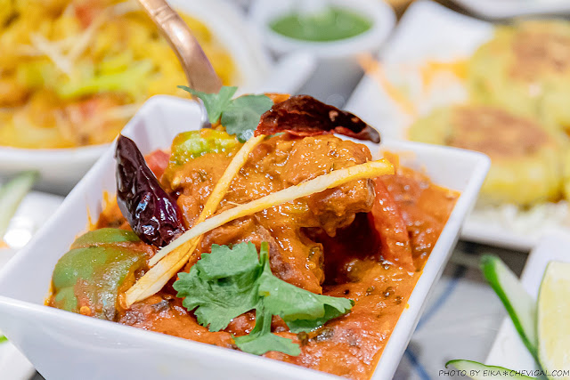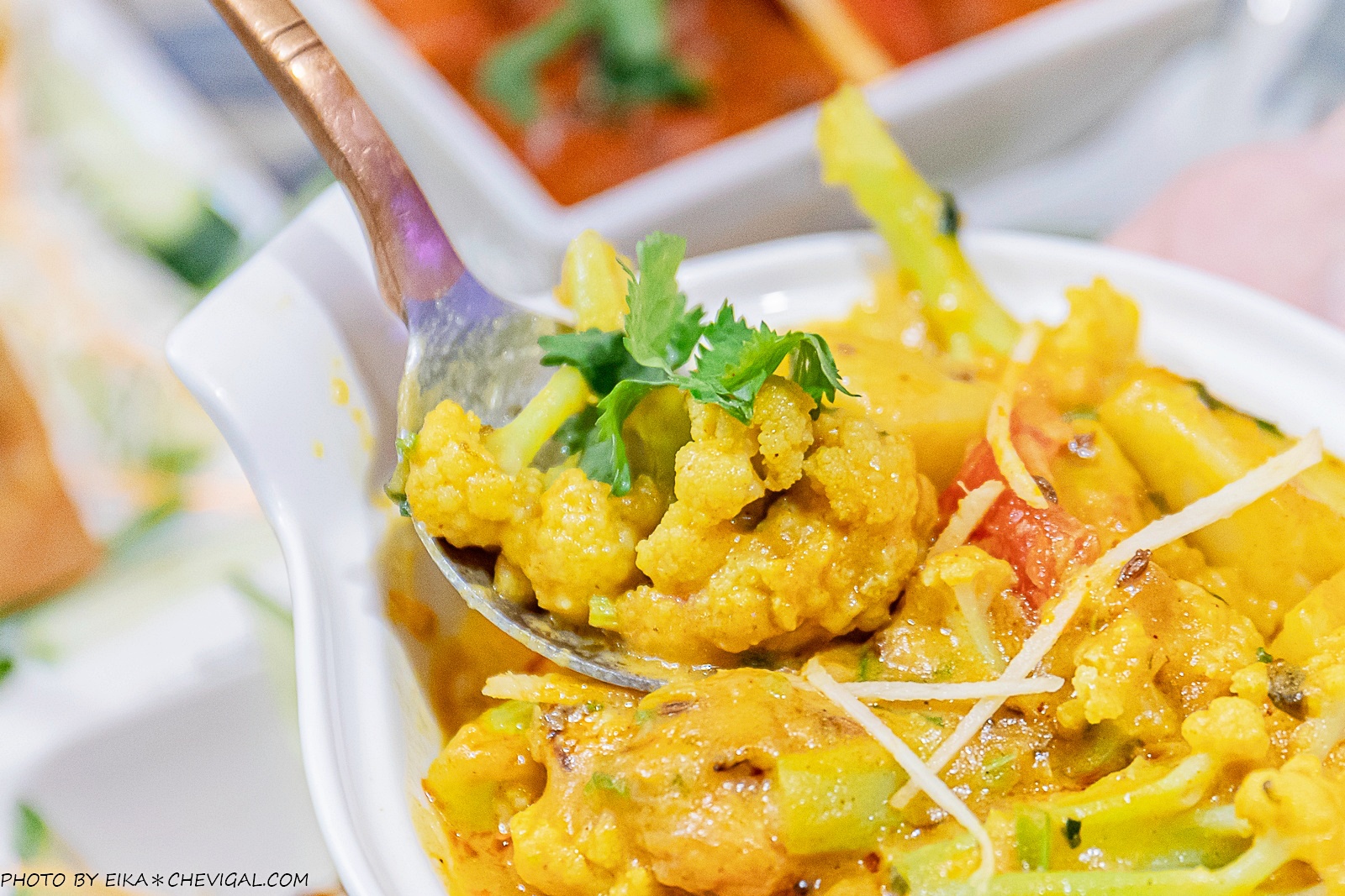 印式辣味馬鈴薯花椰菜咖哩$260元,誰說吃素就不能享用印度料理呢?斯里印度就特別推出了素食咖哩!口味相較於店內其他咖哩來說,也會來得比較清淡不刺激。