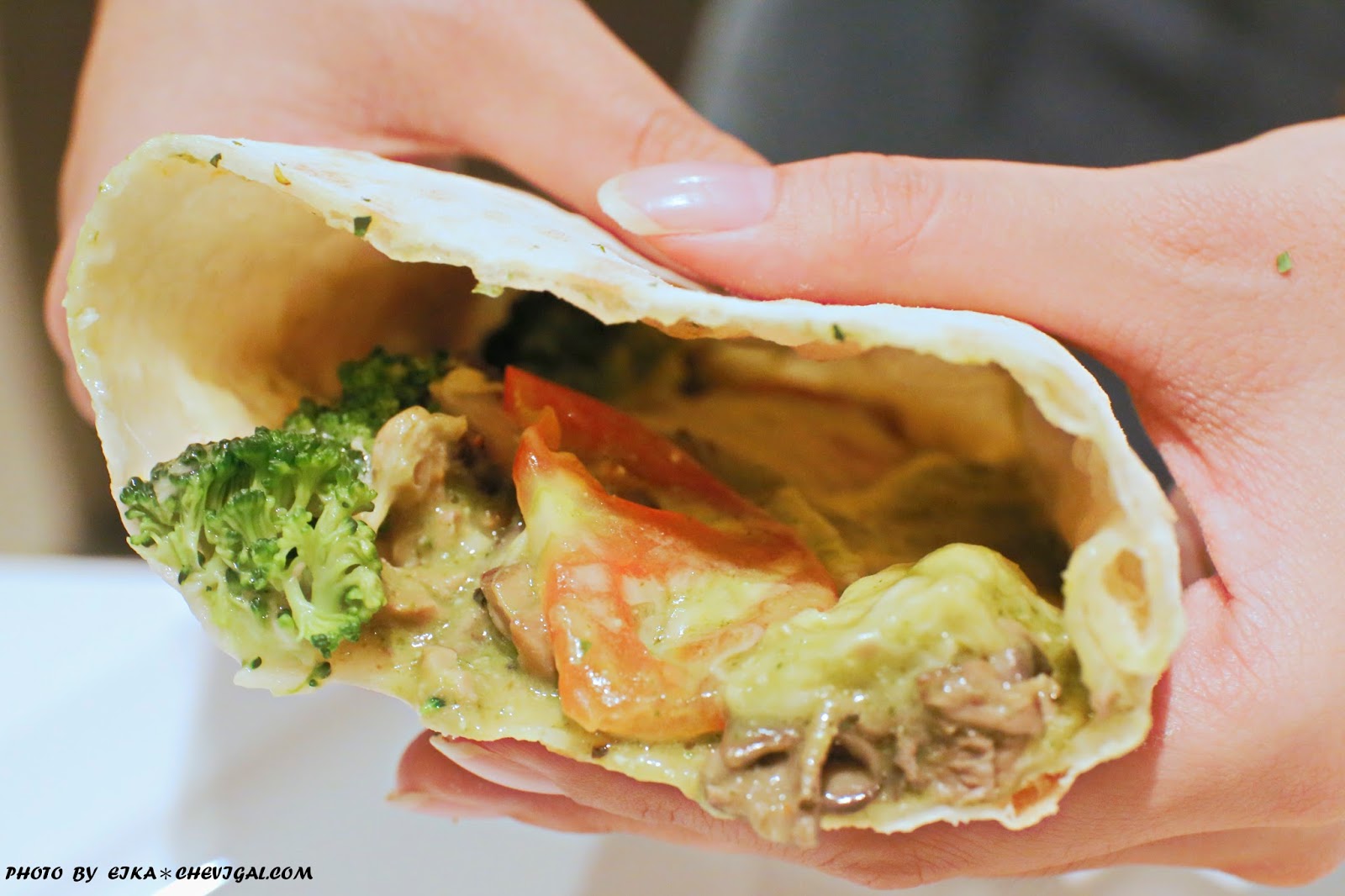 享用時會建議直接對半切分,內餡比較不會掉出來~裡面有著花椰菜、紅蘿蔔與菇類等多種食材,可以吃到蔬菜本身的鮮甜;雖然整體不是完全實心飽滿的內餡,但是其實吃起來還蠻飽的耶!