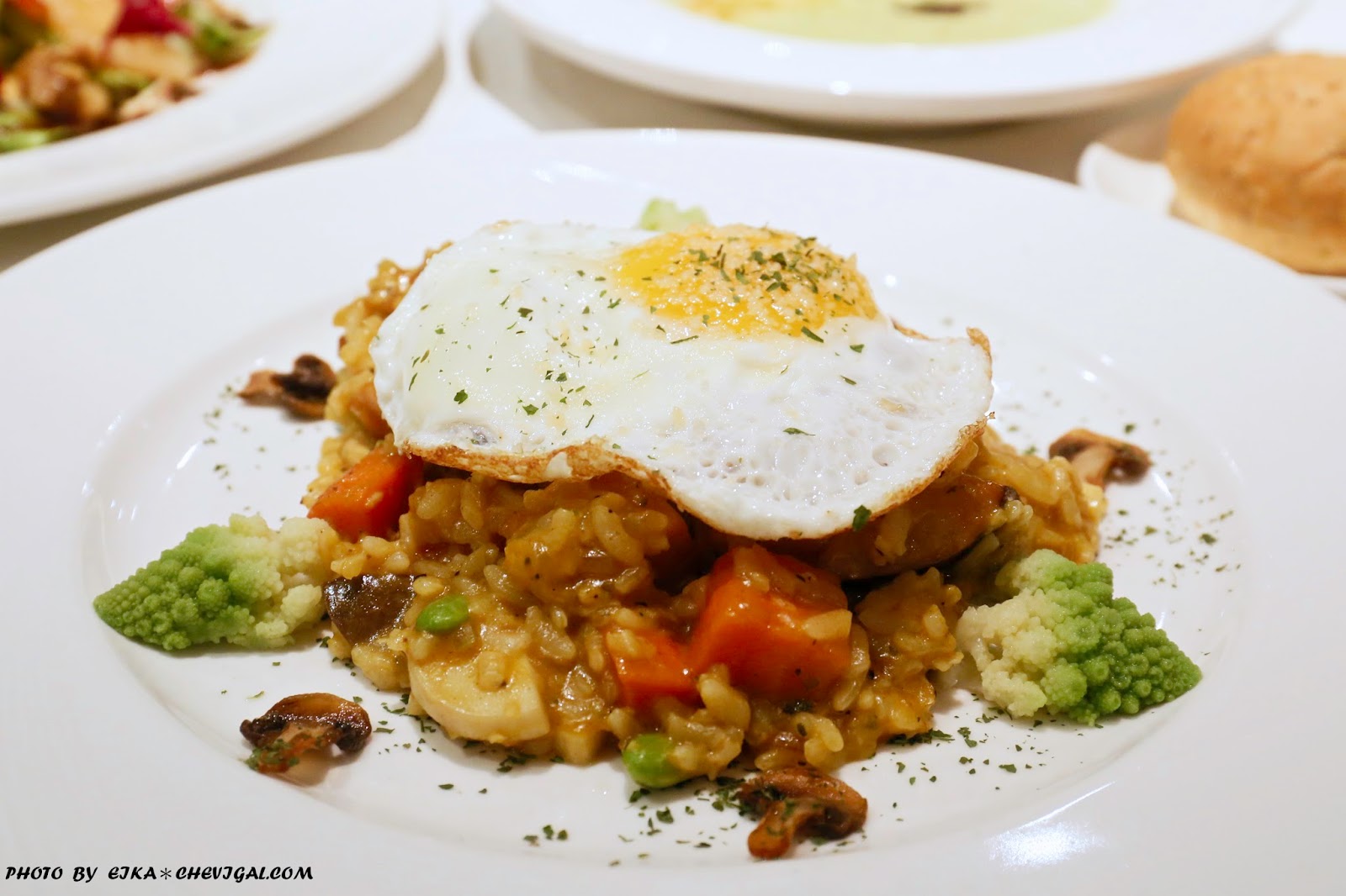 燉飯上頭放著一顆飽滿的太陽蛋,劃破之後流出的蛋液與燉飯充份拌勻,整體更多了幾分甜味與滑順~