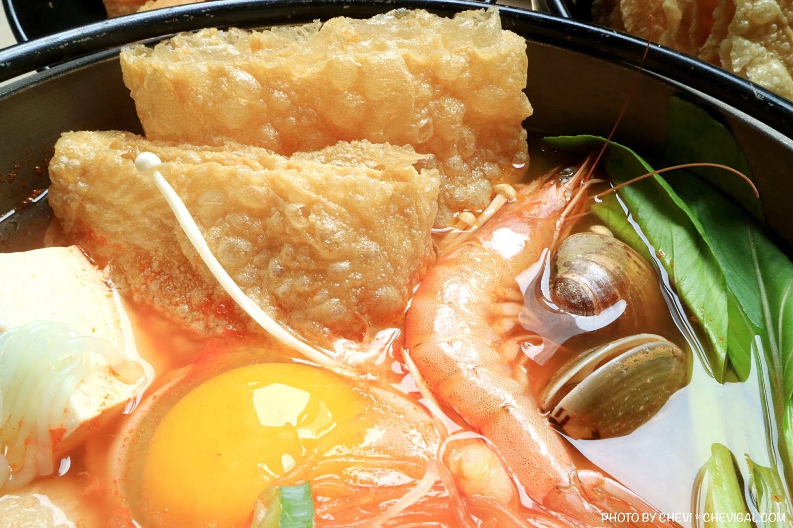 對了,每鍋的食材都會附有豆皮,但是也能再另外加點;而且這裡的豆皮真的非常大塊,能夠吸滿飽飽的湯汁精華,大口咬下甚至還會有爆汁的口感!