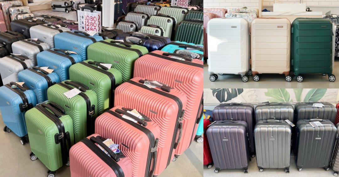 走進特賣會會場,可以看到各式繽紛的行李箱整齊陳列擺放,有不少咖行李箱都是千元初頭的甜甜價呢!
