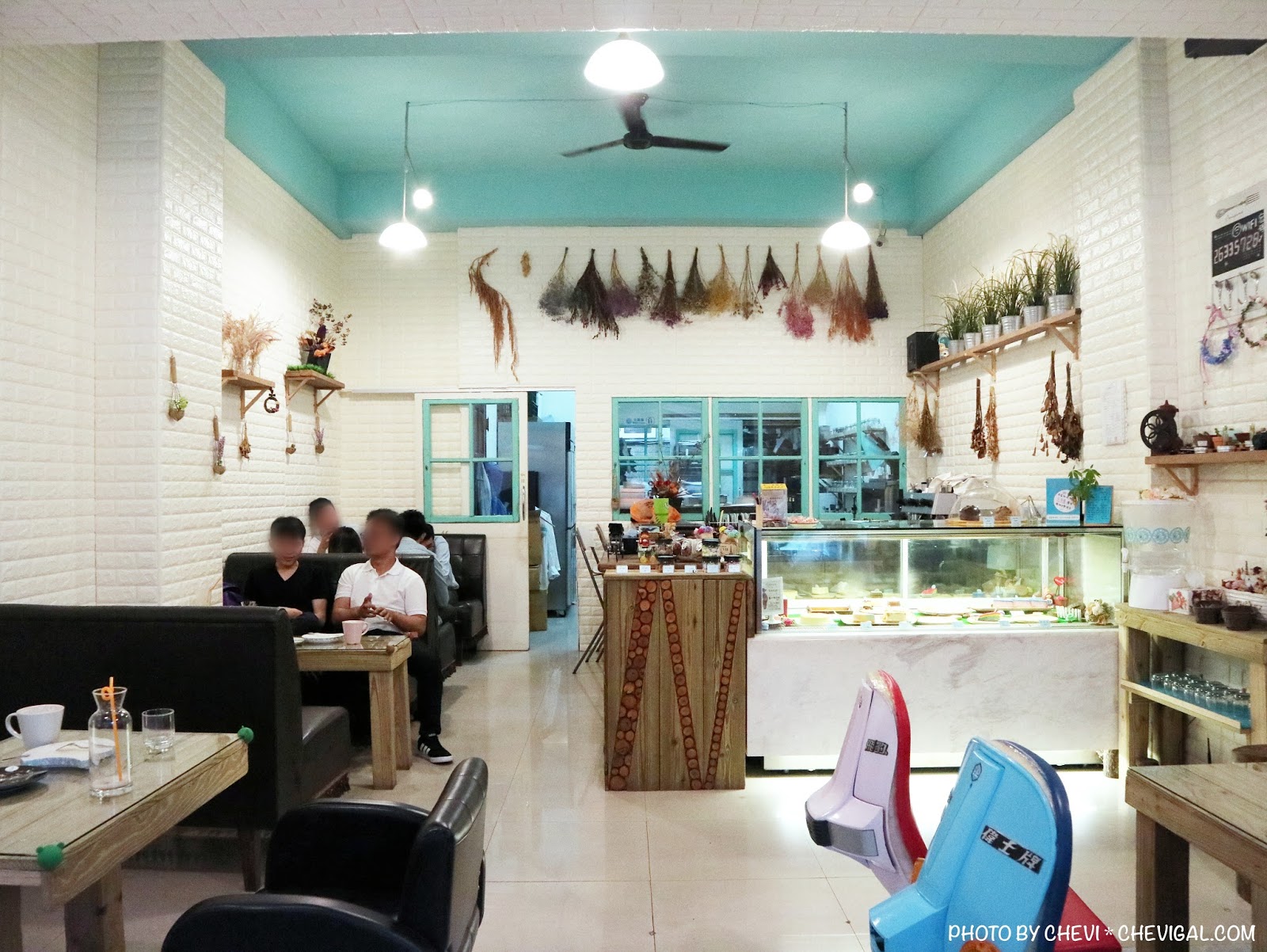 店內空間以鄉村風格為主,乾燥花搭配上清新的蒂芬妮綠,讓人覺得簡單而溫馨。
