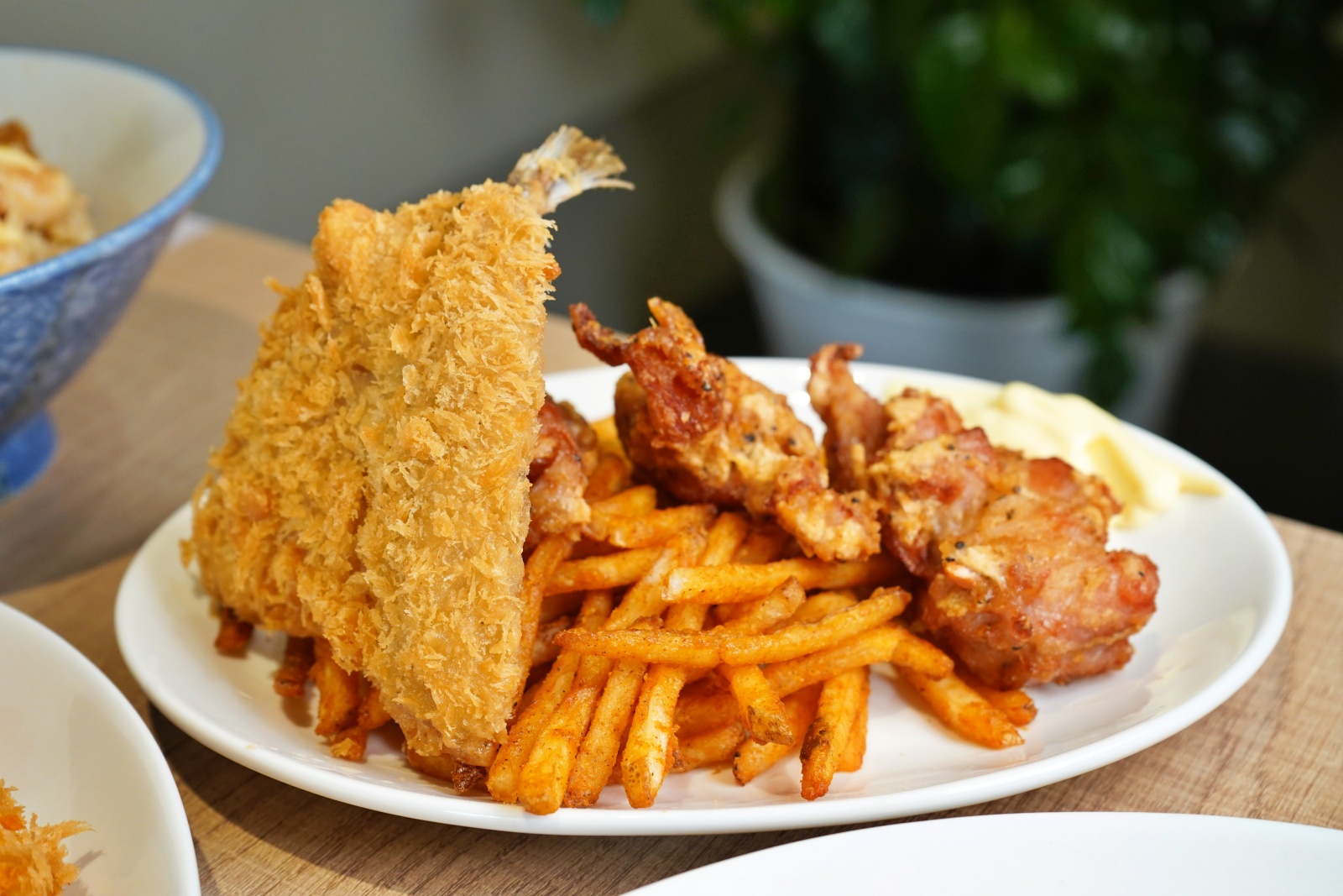 一上桌就看得出來是真材實料的蝦子,不是靠麵衣撐場。麵衣薄而酥,蝦肉本身彈牙新鮮,外酥內彈,搭配QP美乃滋,酸香剛好解膩。