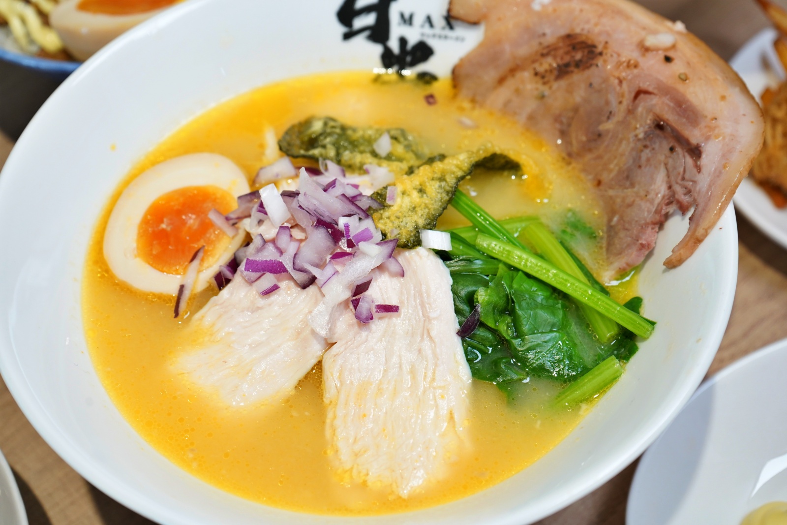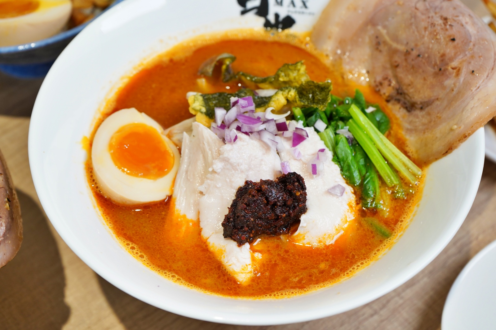 「滿足 MAX」的份量配置也相當有誠意,叉燒、雞叉燒與溏心蛋通通加量,叉燒加1枚、雞叉燒直接加3枚,溏心蛋更加了半顆。對喜歡吃肉的人來說很有誠意。想犒賞自己時這樣點準沒錯。