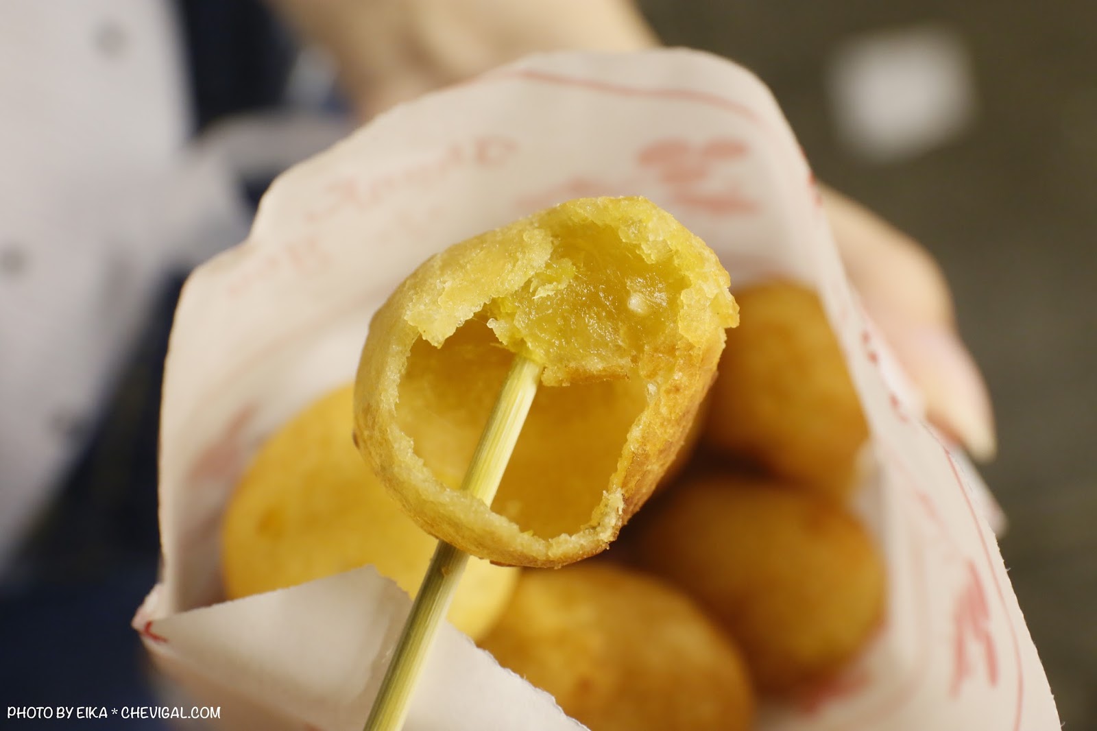 咬開外表香酥Q彈的地瓜球,還能吃到裡頭的地瓜內餡,有著淡淡的地瓜香氣;內餡雖然不是很多的那種,但是吃起來也不會那麼膩口,單吃或搭配飲料都不錯,推荐給你們唷!