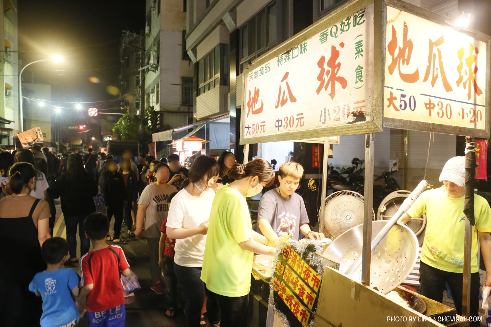 你沒看錯!相機根本沒辦法拍完所有人潮,後面這些人可不是在排其他攤,大家都是要來買地瓜球~還真沒看過哪個夜市的地瓜球排得這麼誇張!