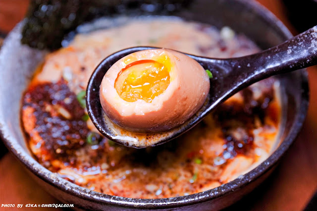 溏心蛋也是在拉麵裡常見的食材,有別於一般剖半的溏心蛋,這裡是一整顆完整的溏心蛋!咬下金黃半熟的蛋黃,可以感受到膏狀的流動感,不會過熟,還蠻好吃的。
