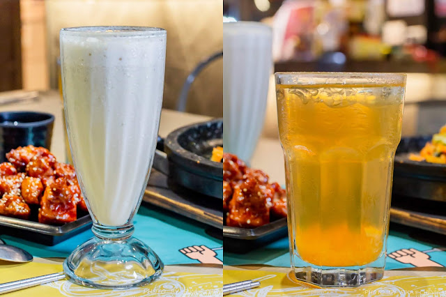 香蕉牛奶喝來香濃滑順,甜度不會太甜,香蕉的果香還蠻自然的;正韓柚子茶帶點微酸微甜的滋味,也很解膩~