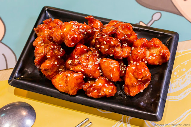 韓式炸雞(紅醬)$128元,吃過這麼多間的韓式炸雞,我們覺得O八韓食的口味還蠻合胃的!紅醬的辣度大概在小辣與中辣之間,卻不會辣到一直讓人猛灌水~不吃辣的朋友也可以選擇黑醬口味的韓式炸雞唷~