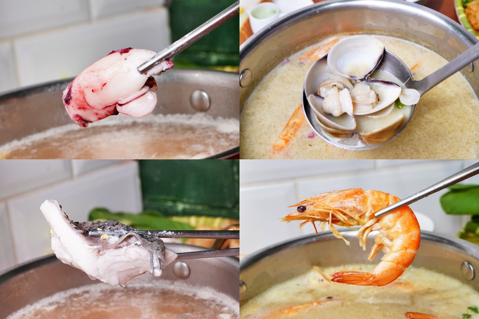 魚編自己超愛白蝦與「泰暖翡翠綠咖喱」湯底的組合,蝦肉緊實彈牙,吃起來還帶有綠咖喱的酸辣滋味,相當開胃過癮!