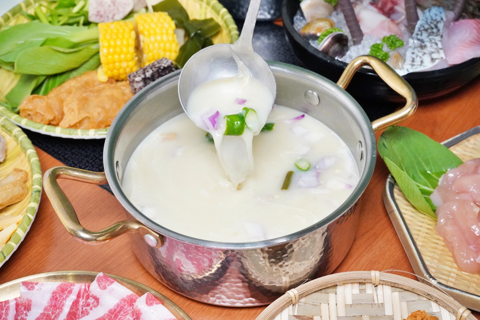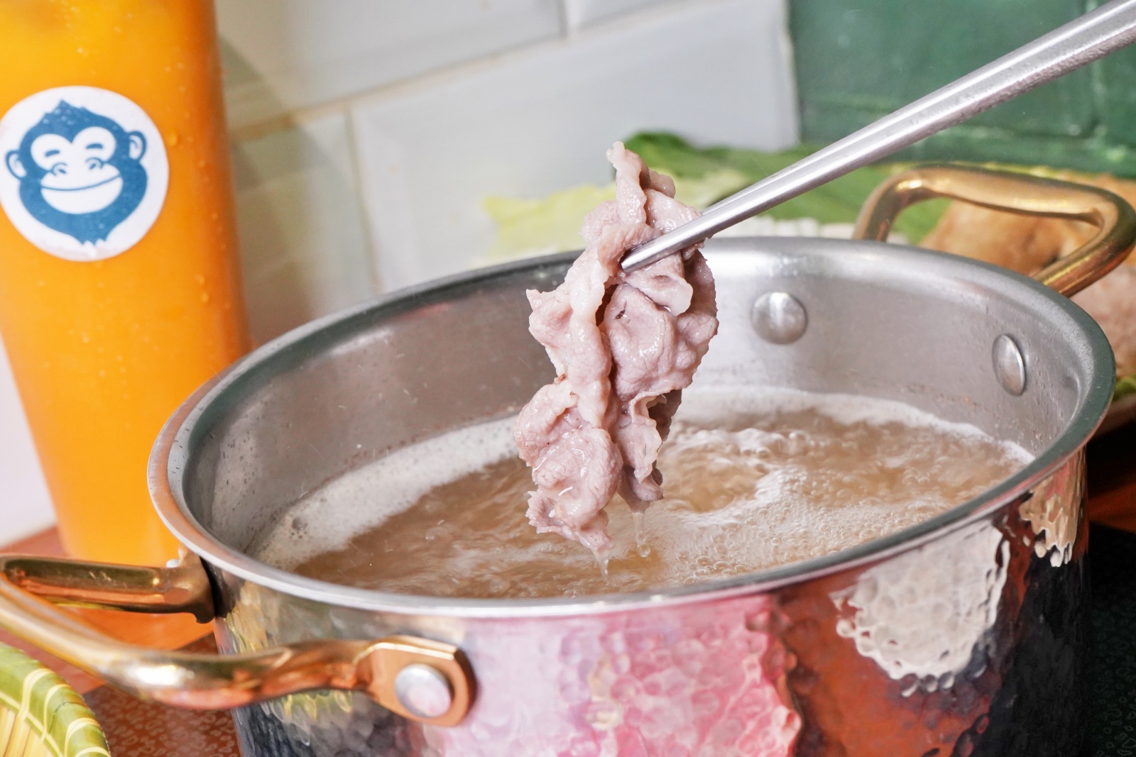 平常敢吃辣的話,一定要試試這款「泰暖翡翠綠咖喱」湯底,不僅綠咖哩味道濃厚,裡頭還加入了蔥段與紫洋蔥提鮮去腥,迷人的微辣香氣,涮煮肉品或海鮮都很搭!