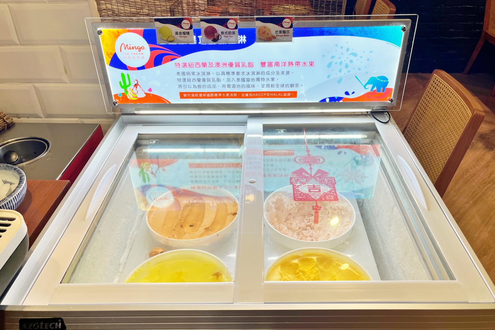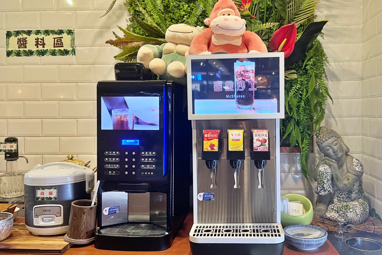 旁邊還有白飯、咖啡機、果汁與沙瓦可以取用,飯後當然少不了冰涼的明果冰淇淋~