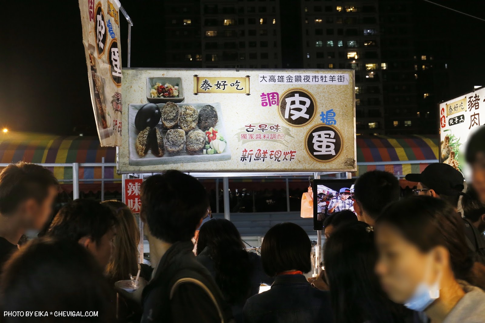 逛著逛著,也剛好覺得肚子餓了,看到這攤現炸皮蛋還蠻多人排隊的~感覺炸皮蛋好像也不是每個夜市都有,好奇的我們就買來吃吃看~