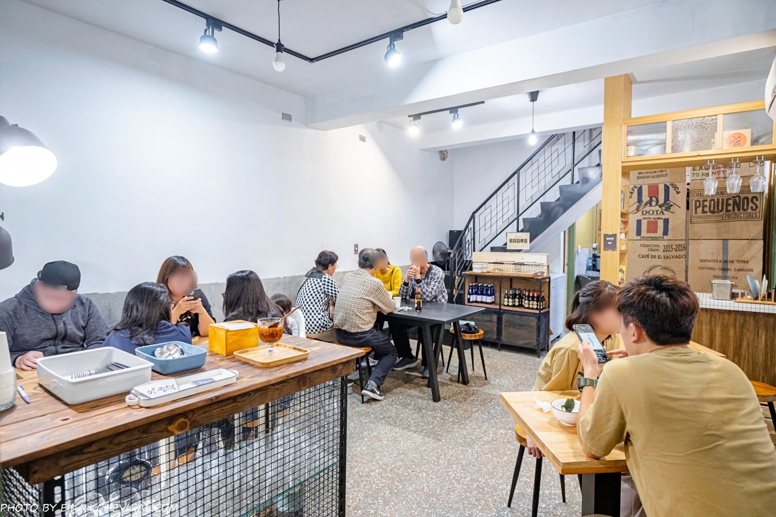 原本為印刷廠的老宅空間,雖然被改造為用餐區域,不過在極簡工業風的裝潢之下,仍然保有老宅特有的磨石子地板。整體乾淨溫馨,適合與家人、朋友一起來聚餐、約會。