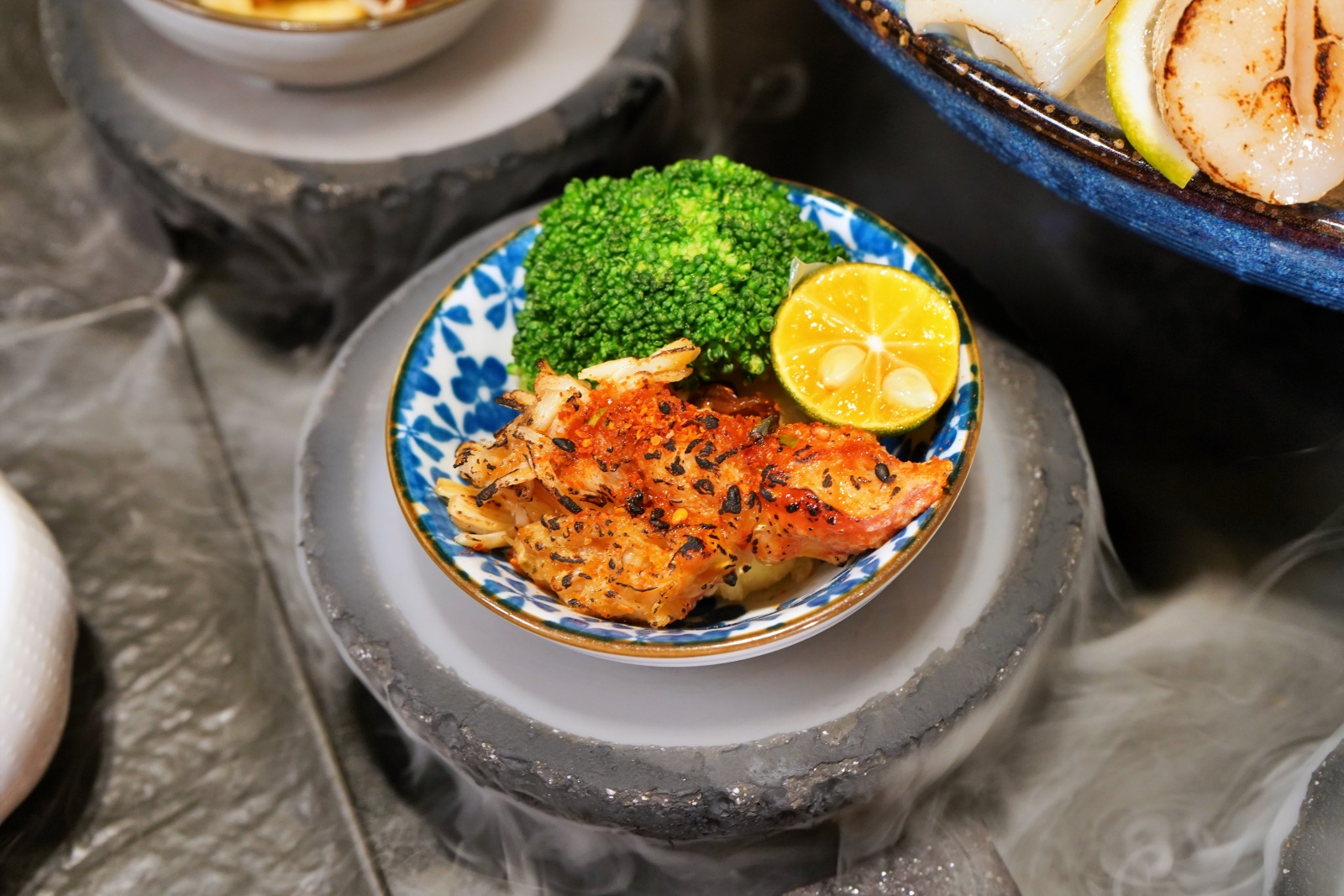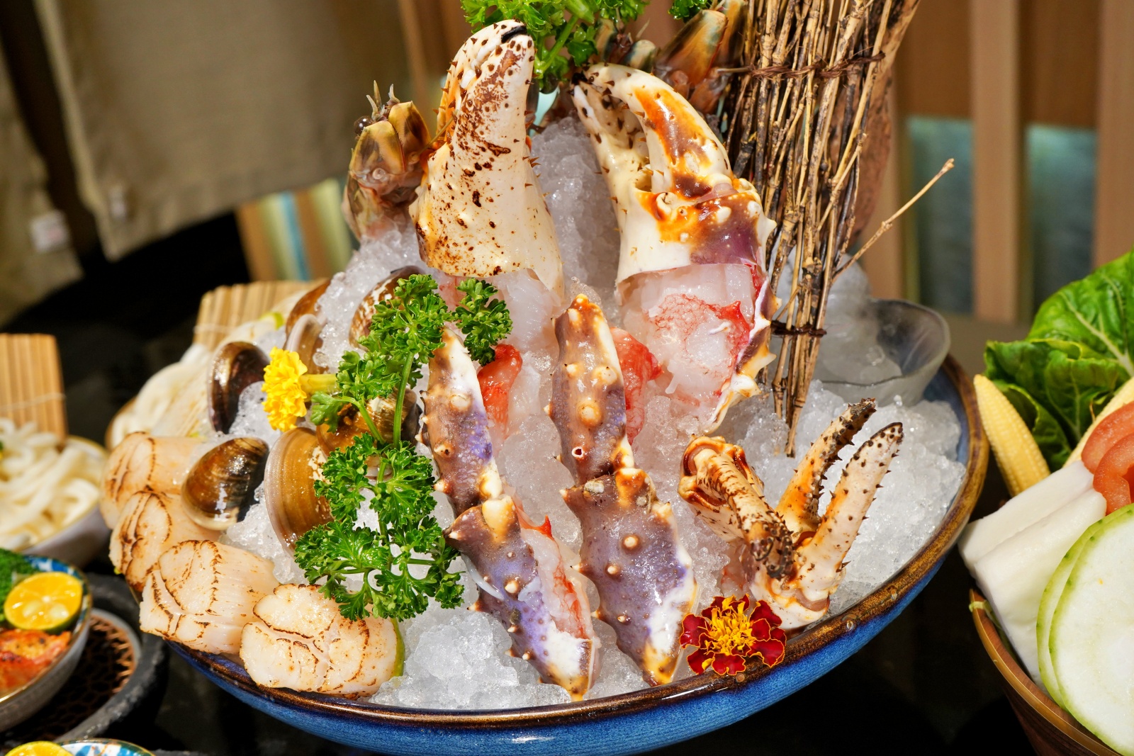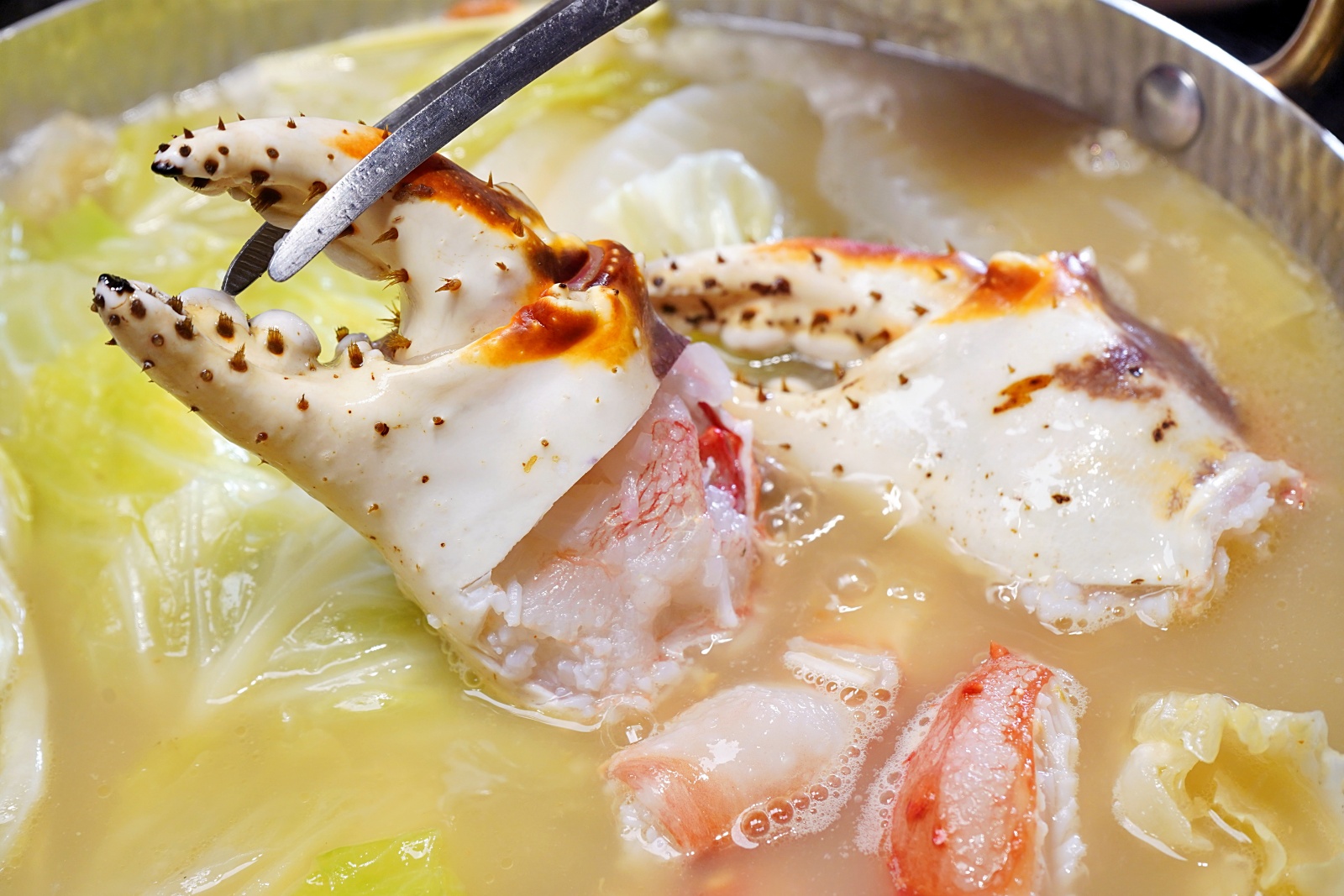 我們選擇的是近期新推出的「花膠雞湯海饌四人宴」,這套主打以「膠原雞湯」為靈魂的鍋宴,從北海道帝王蟹多吃、花膠、海參與少見的華陀雞,到侍食師的桌邊服務,每一道皆承載恰到好處的用心,更是一場充滿溫度的款待體驗。