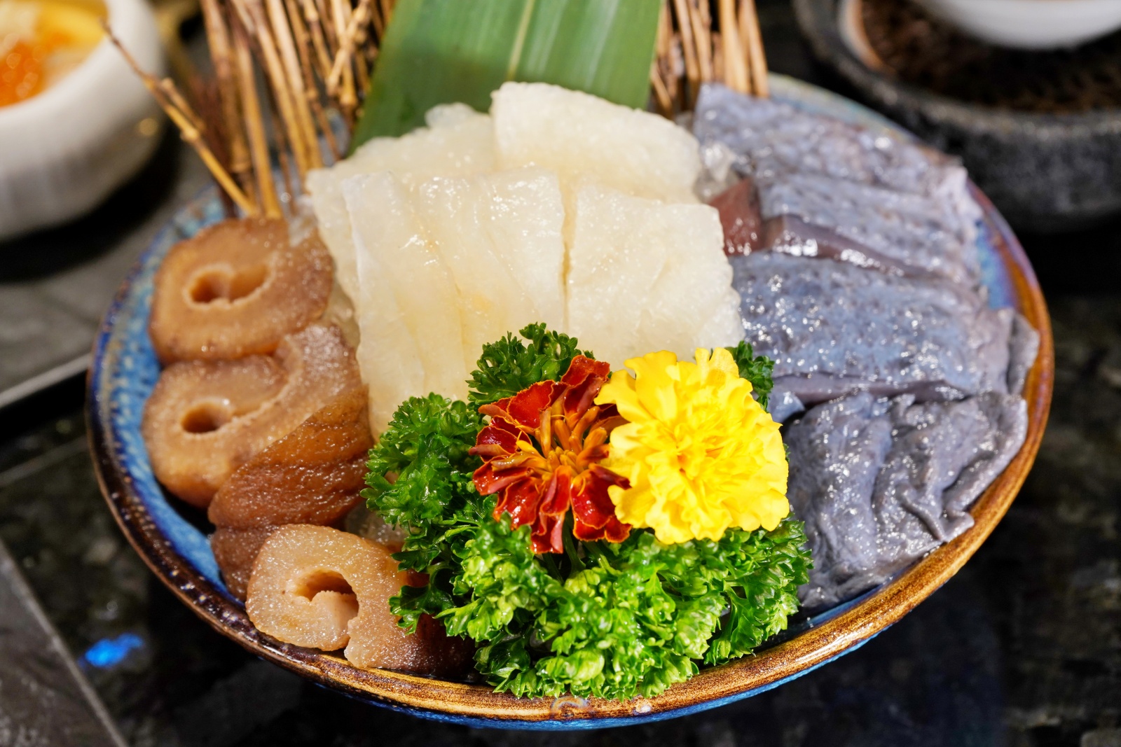 侍食師特別以上湯入味的方式呈現,讓蔬菜不僅保留清甜,更多了一層高湯的鮮香。乳白色的鱈寶則取自深海鱈魚的精華魚漿,入口柔彈細緻、內裡綿密,吸附了滿滿的湯汁精華,帶有淡淡魚香與海味的甘甜。