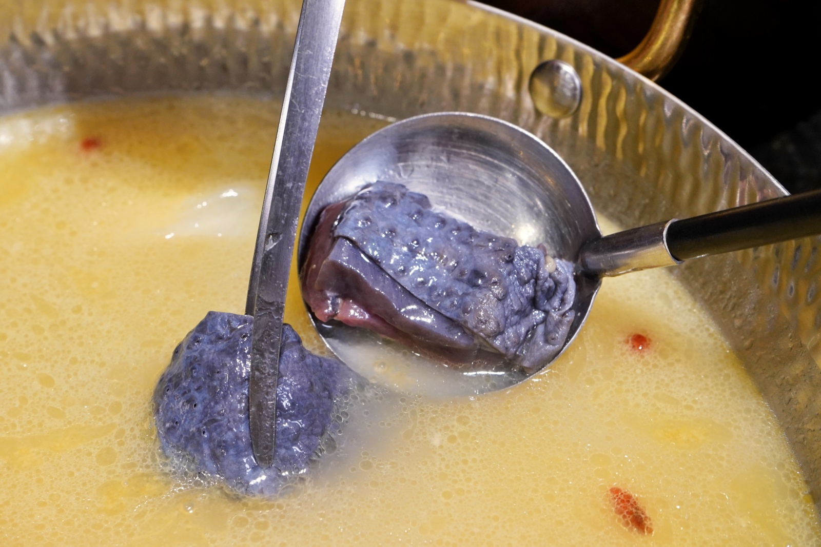 海參在鍋裡是最內斂的一味。它吸附湯汁後的口感介於Q彈與柔軟之間,細細咀嚼會釋出淡淡海味與膠質滑韻。