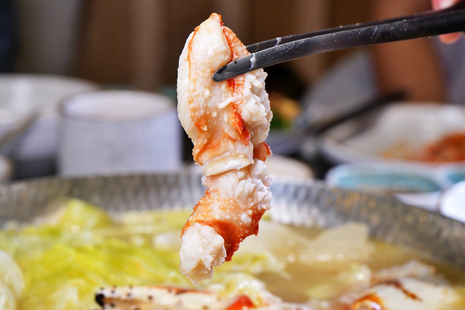 經過花膠雞湯的涮煮,一口咬下,就能感受到蟹肉的鹹甜與湯底的醇厚交織。