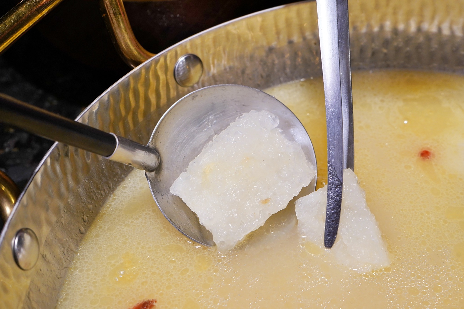 花膠吸飽雞湯精華後,質地軟嫩帶彈性,咬下時幾乎無味卻滿溢膠感,像在口中緩緩化開。讓整鍋湯的「潤感」達到極致,柔順、滋補、像一層絲絨般包裹味蕾。