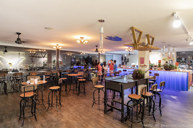走進貨櫃屋內的空間算是相當寬敞,幾乎所有室內的座位都是採高腳桌椅的形式,搭配上店內絢麗變幻的燈光,不說可能還會讓人以為自己是來到了某間酒吧呢!