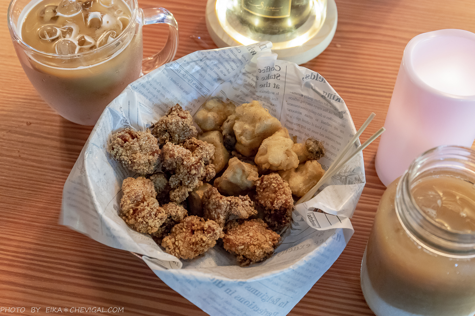 炸物我們點的則是鹹酥雞與杏鮑菇,可能是因為我們太興奮一直跑出去猛拍夜景,所以享用的時候口感稍微有差;鹹酥雞的表現比較中規中矩,杏鮑菇吃起來還鮮嫩多汁的~