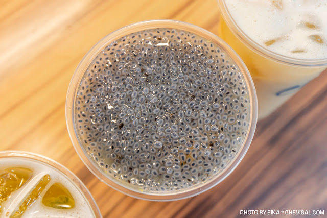 另外還以富有口感的小紫蘇搭配Q滑的愛玉,對於喝飲料想要嚼點東西,卻又懶得嚼很久的朋友來說真的很方便,我們才喝半杯就覺得有點飽了XD