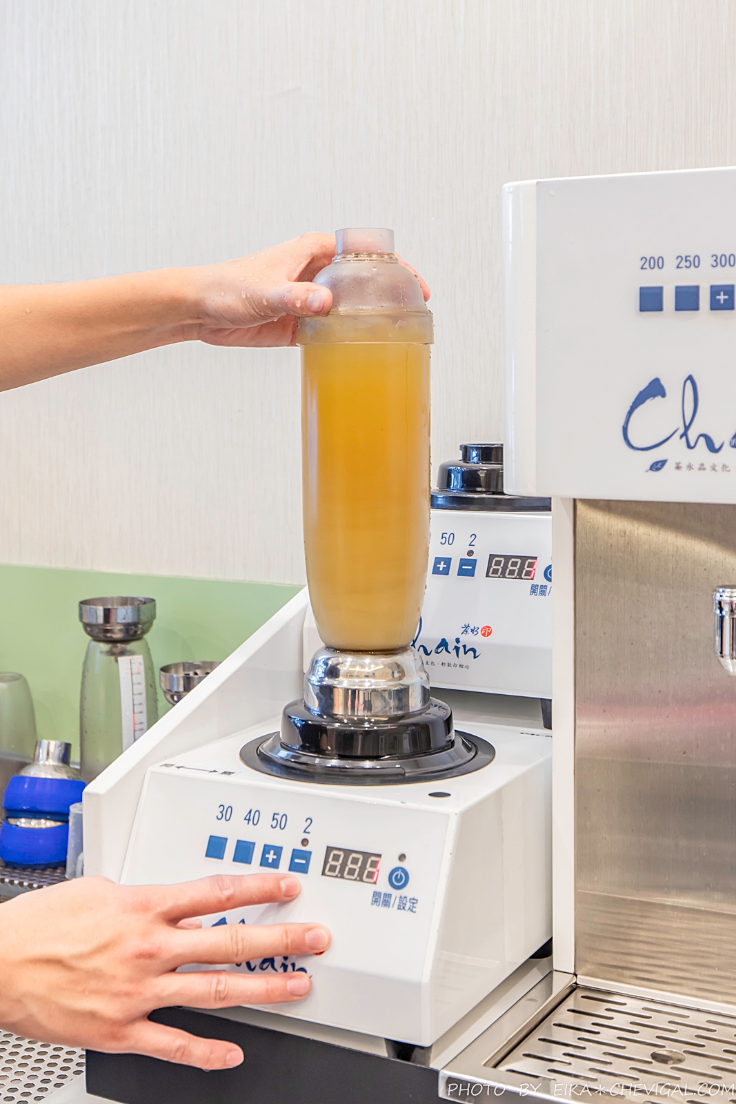 先來和你們介紹最基本款的翠玉冰茶,這款就是以獨家專利的漩茶機製作而成,將嚴選的茶葉茶包放進漩茶機當中,依照不同茶葉所需的時間進行360度漩茶。