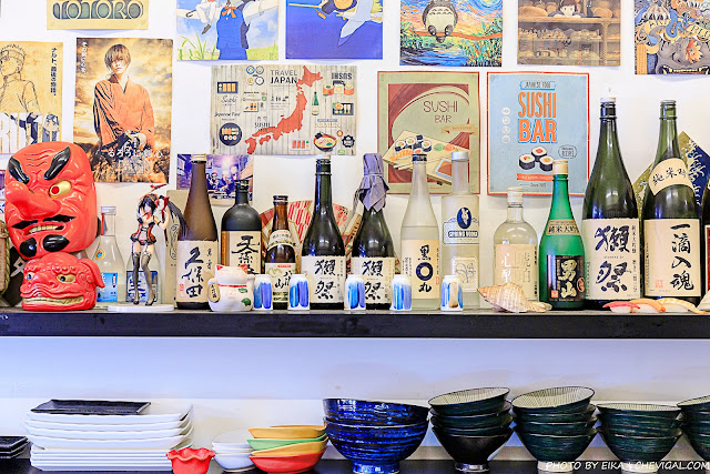 在吧台後方的牆面上可以看見許多店家的收藏與海報,帶有濃濃的日式風情;沒想到連盛裝海膽的木盒也能轉換成有趣的擺飾,就知道這裡選用的海鮮等級與新鮮度都有一定的水準。