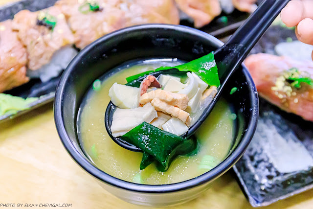 海味味噌湯$40元,別小看這碗看似不起眼的味噌湯,其實撈起來都是滿滿的料!裡面吃得到鮭魚、肉感紮實的旗魚、豆腐與海帶,帶有厚度的海帶吃起來又格外地幼嫩,真的超級澎派!