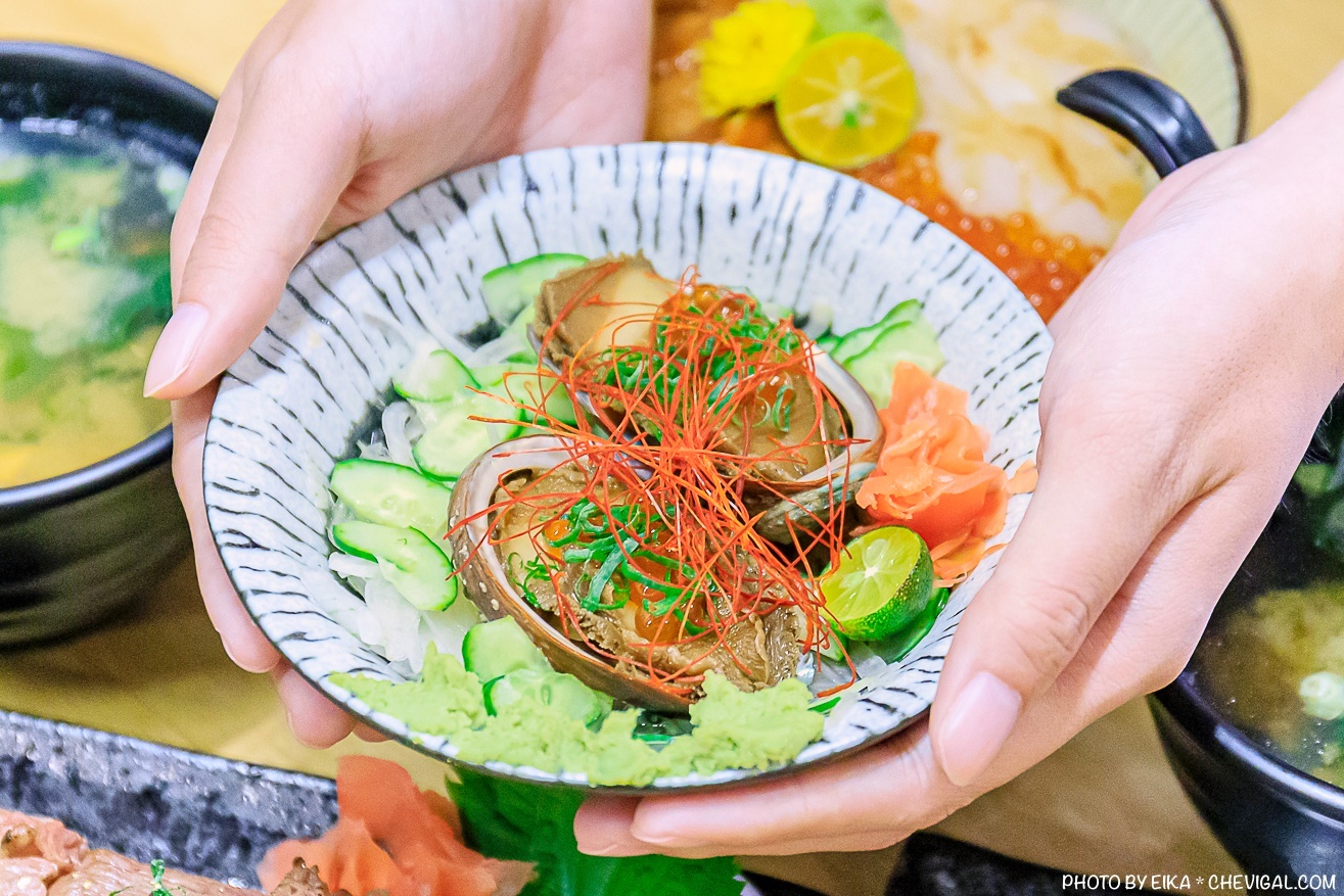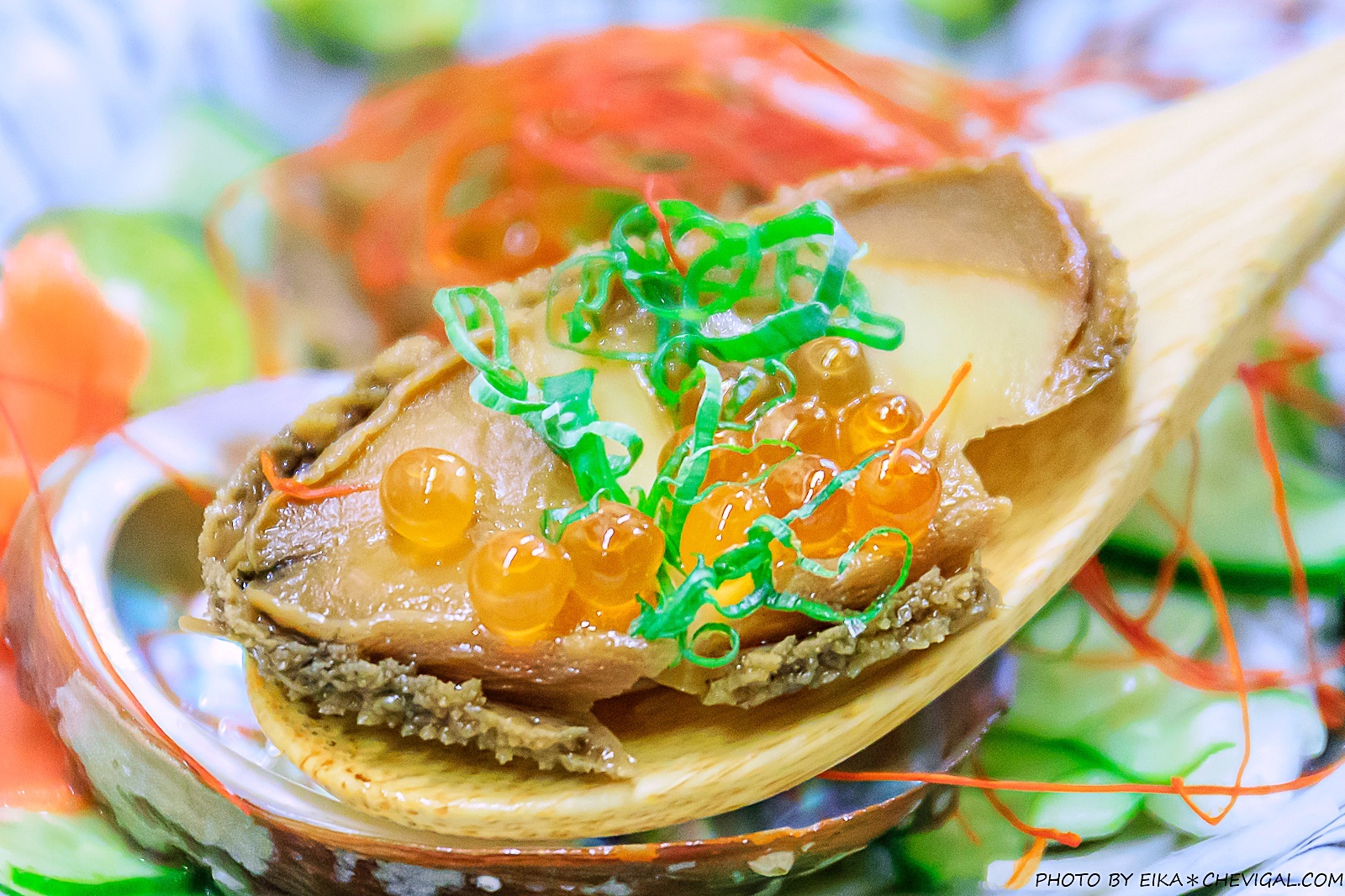 更貼心的是每隻還分切成三小塊,除了更好入口之外,也很方便讓大家一起分享。鮑魚表面點綴數顆鮭魚卵,底部更有洋蔥沙拉襯底,特別鹹香開胃,十分適合作為夏日的下酒菜!