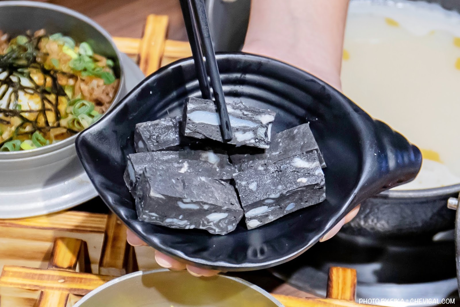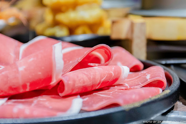 我們後來選擇的是板腱牛,不得不說肉質色澤的確非常漂亮!除了在上桌時可以看見肉片的「空氣感」,而且厚度相當有誠意,還沒下鍋涮煮就我們忍不住猛流口水了~