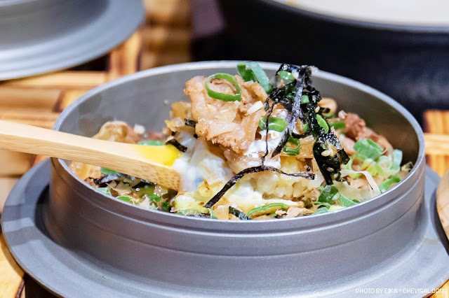 附餐主食有白飯、寬冬粉、烏龍麵、蒸煮麵與鮮蛋可以選擇,想吃澎派一點也有多種釜飯可以加購,像我們點的牛肉釜飯也是蠻多客人愛點的品項。