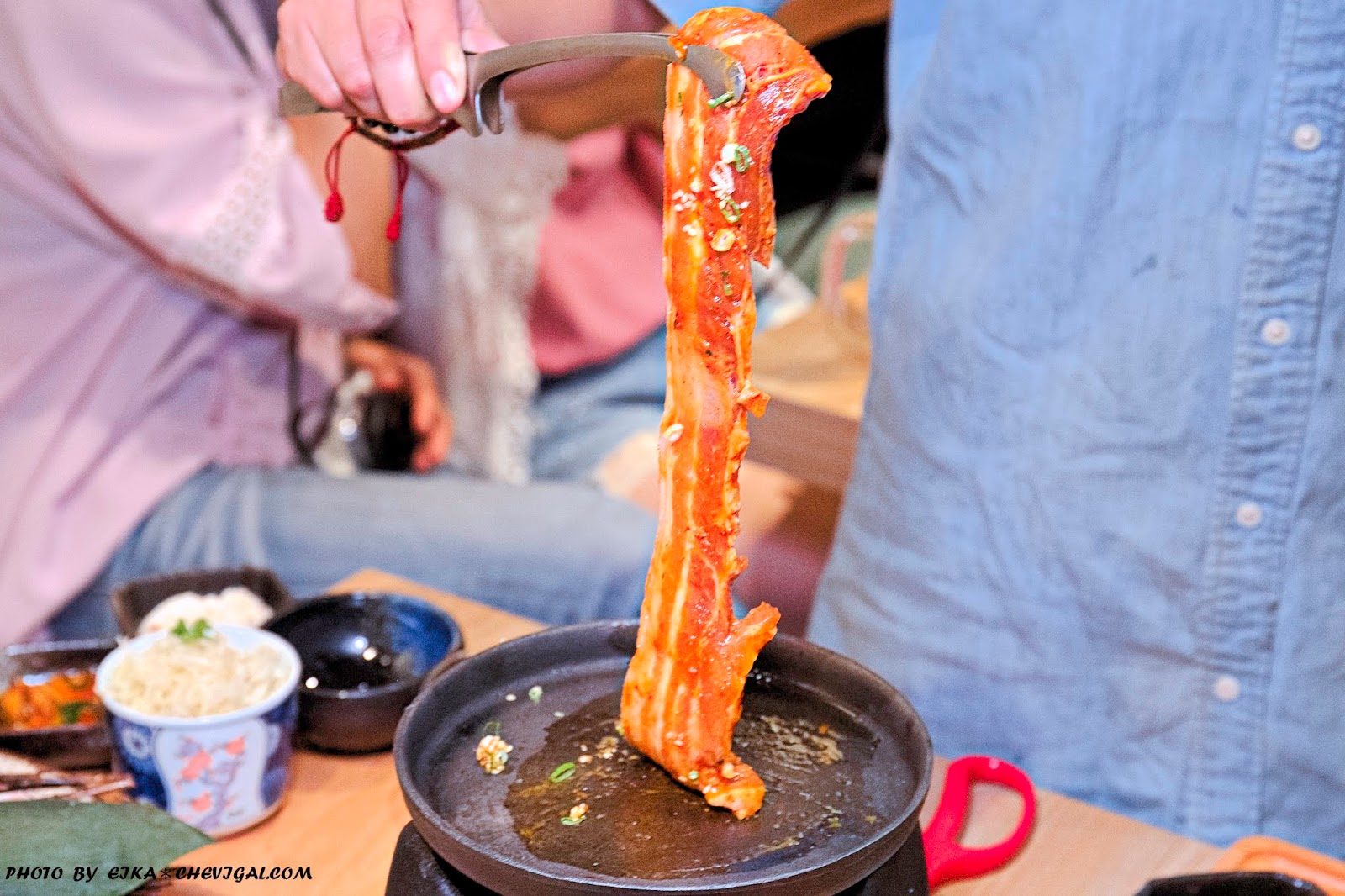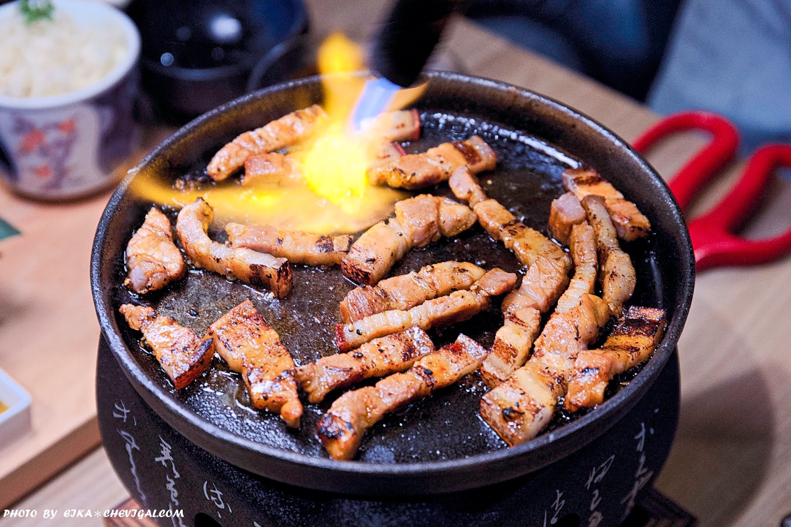 我們請服務人員幫我們夾起五花肉,展示整份肉的厚度與長度,可以說是非常有份量!夾久了真的是會手痠的捏~