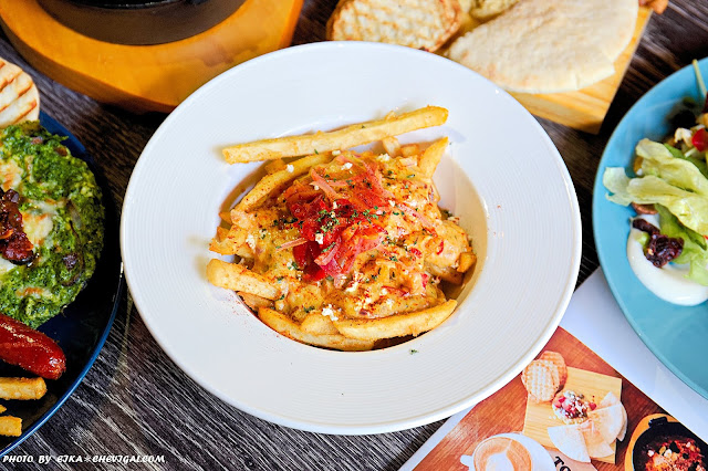 不同風味的起司融合在一起,與表面的洋蔥、番茄一同入口,香濃的奶香與鹹香當中帶點鮮甜;趁熱拉起薯條還看得到細緻的牽絲,真的好犯規啊!