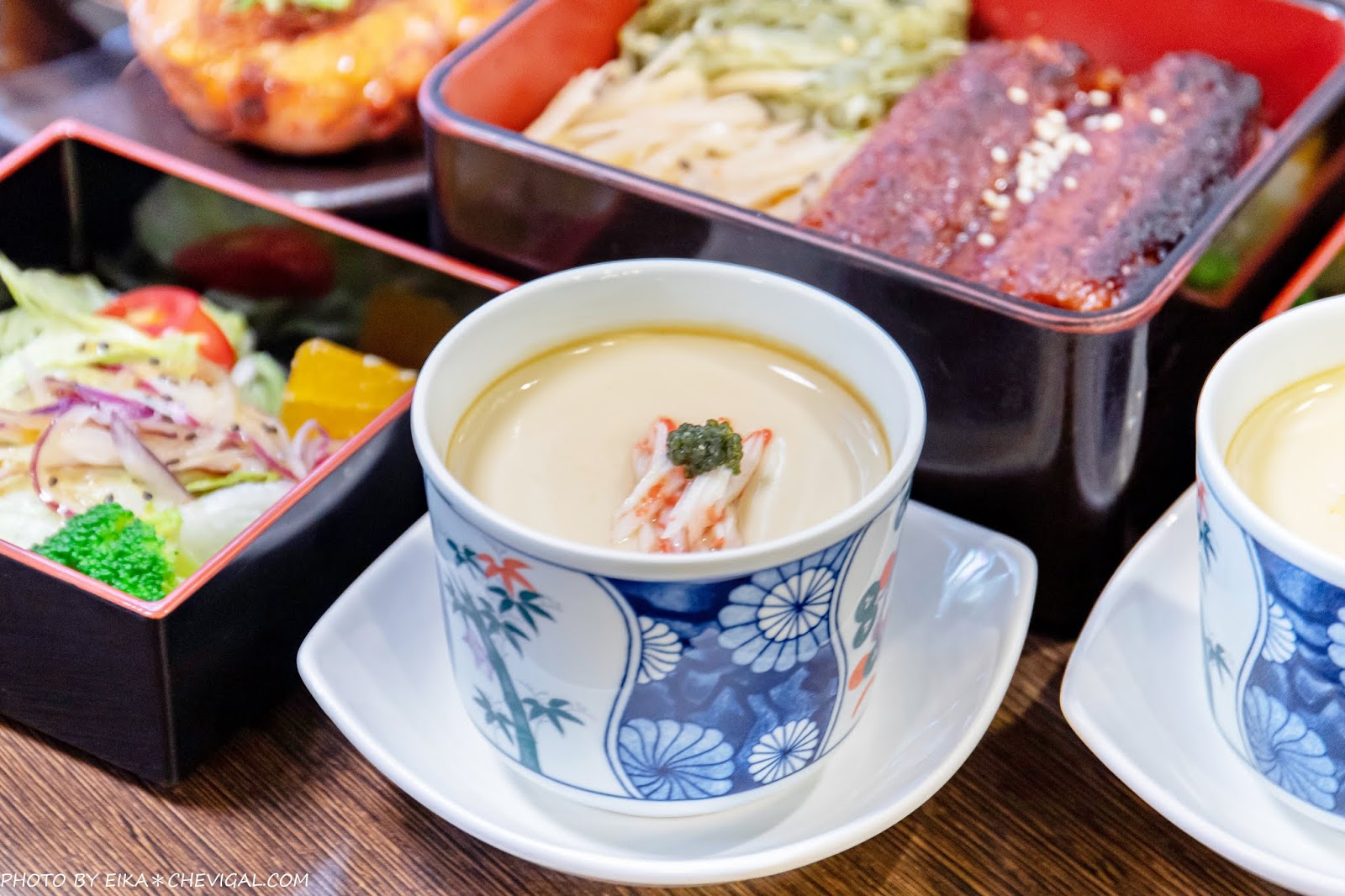 丼飯系列另外均附沙拉、蒸蛋與湯品,這時候就更覺得蒲燒鰻丼真的很超值!沙拉以清新的和風醬汁調味,吃得到生菜的爽脆與水果的沁酸與鮮甜,還挺開胃的。