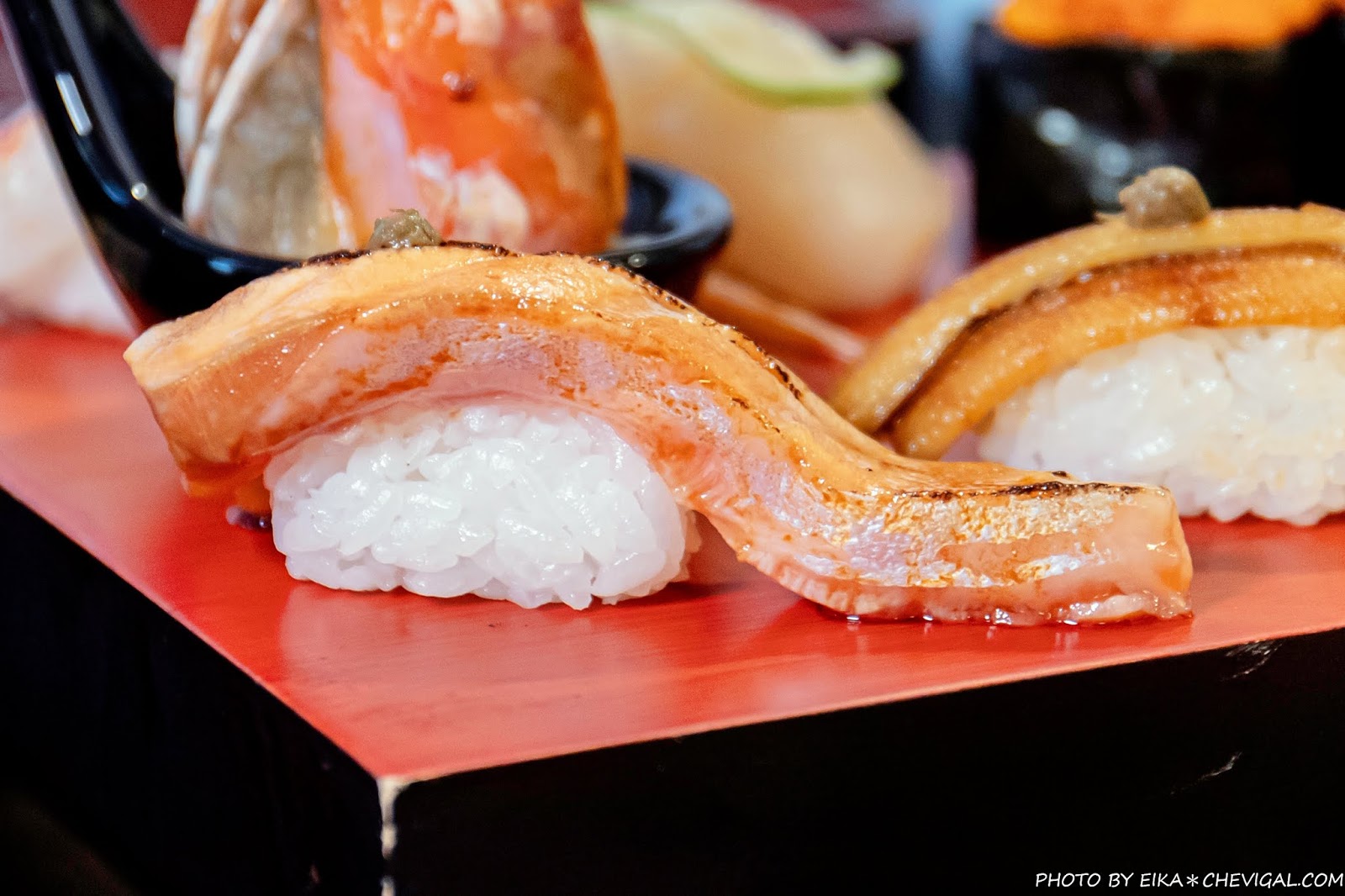 炙燒鮭魚肚的厚度非常有誠意,炙燒過後的油脂香氣又比生魚片來得迷人,肉質不顯柴澀,大口咬下卻也不會感到過於膩口,吃起來的飽嘴感還不錯~