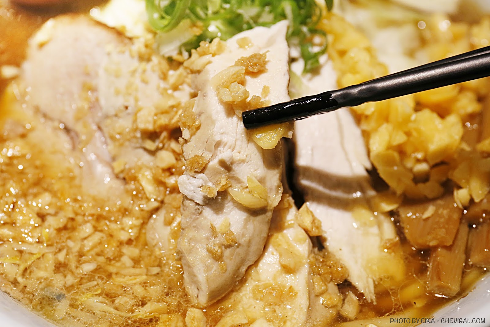 相較於單純雞淡麗系的湯頭,我們更喜歡筍乾在這款湯頭的表現,筍乾的甜味與豚骨、雞骨的甘醇,以及蒜頭的辛香營造出十分和諧飽滿的風味。
