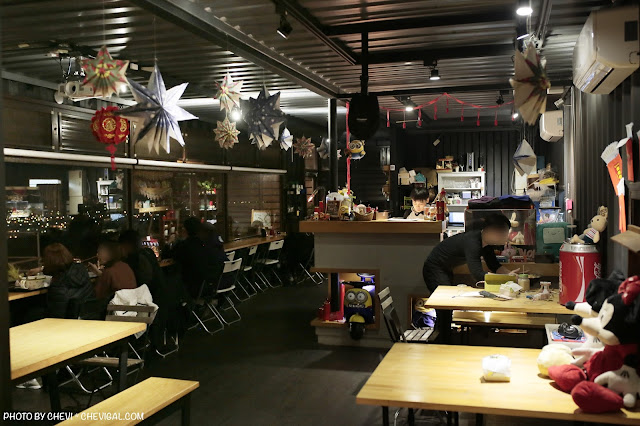怕冷的朋友可以選擇貨櫃屋內的座位,一樣也有靠窗的位置可以賞景,不過這裡可是熱門的座位,比較晚到的我們就沒有太多室內又能賞景的位置可以選擇啦!